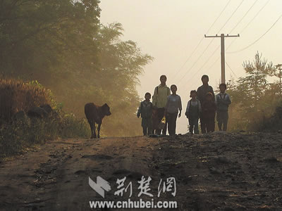 學(xué)生們踏著晨霧趕往學(xué)校。
