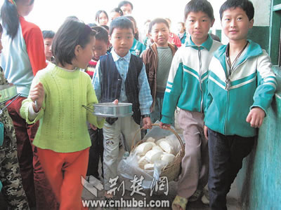 早餐每個學(xué)生一個饃。