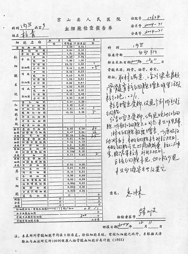 楊青血細(xì)胞檢查報(bào)告單(圖)