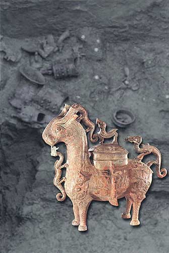 青銅犧尊;酒器(高12.07厘米,寬40.5厘米)[相關(guān)鏈接]:20世紀(jì)中國(guó)百項(xiàng)考古大發(fā)現(xiàn)(1-20)20世紀(jì)中國(guó)百項(xiàng)考古大發(fā)現(xiàn)(21-40)41、大甸子遺址和墓地(圖)42、偃師商城(圖)43、鄭州商城遺址(圖)44、盤龍城遺址(圖)45、安陽殷墟遺址(圖)46、吳城遺址(圖)47、新干大墓(圖)48、三星堆祭祀器物坑(圖)49、周原遺址(圖)50、豐鎬遺址與墓地(圖)51、琉璃河遺址(圖)52、晉侯墓地(圖)53、三門峽虢國(guó)墓地與上陽城遺址(圖)54、晉國(guó)故城遺址(圖) 55、鄭韓故城(圖)56、燕下都遺址(圖)57、曾侯乙墓(圖)58、紀(jì)南城周圍的墓葬群(圖)59、中山王陵(圖)60、銅綠山礦冶遺址(圖)