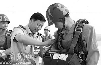 在“神舟”六號發(fā)射前夕,記者來到駐鄂空降兵某部軍營,采訪了曾任聶海勝傘訓(xùn)教官的空降兵某部研究所所長李振波。