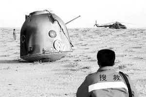 如今,“神舟”6號發(fā)射在即。與“神舟”5號相比,“神舟”6號的各種技術狀態(tài)又有質的飛躍。為了滿足載人航天后續(xù)發(fā)展需要,我國已開始選拔培養(yǎng)首批女航天員。廣大航天工作者正在各自的崗位上,默默地奉獻著全部的心血和汗水。今后,他們還將用一個又一個飛天壯舉來證明中國人實現(xiàn)中華民族偉大復興的志氣、信心和能力! 2002年4月1日,“神舟”三號飛船在預定地域著陸。新華社發(fā)來源:《解放軍報》