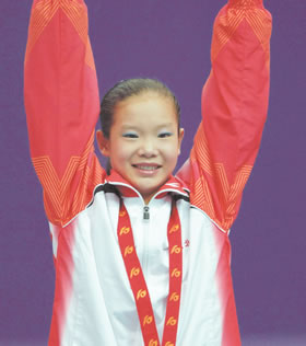 在個人全能賽中,程菲奪得銀牌,這是意外之喜,因為湖北隊將她的優(yōu)勢定位在跳馬和自由操上。那一晚,程菲格外耀眼。第一個項目跳馬便獲得9.734分的高分,雖然她在弱項高低杠中只得到9.100分,但程菲絲毫沒有放棄。在完成了平衡木和自由體操后,終于奪得銀牌。與以往不同的是,從不大愿意談自己的程菲居然夸起自己來了,“因為從未在全能項目上有過突破,所以這塊獎牌對我是個很好的鼓勵,會讓我在后面的比賽中更有信心。”