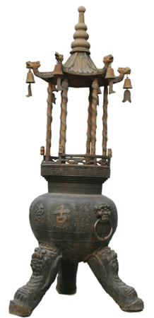 王殿和圓通寶殿之間,安放著一個鑄造于民國初年的寶鼎,這是1997年時,寺內(nèi)的師傅們從寺院的地下挖出來的。時光磨洗,老香爐和圓通寶殿的墻壁一樣斑駁,不過“古德寺”以及“中華民國十四年歲”等字樣依然清晰。