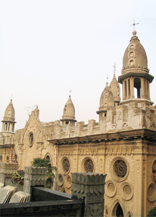 圓通寶殿迥異于一般的中國寺院,它既有天竺佛國的絢爛,又不失西方哥特教堂的莊嚴,甚至還結(jié)合著中國道家的一些幽玄古雅,有一種難以言狀的韻致。正面看去,石質(zhì)的軀體敦實穩(wěn)重,一磚一石,一欄一柱,都是悠然淡泊的面孔;一條回廊繞殿而建,光影迷藏,似有無盡禪機;回廊之上雕花遍布,石柱上如意盤亙,石柱兩側(cè)雕著大象和獅頭,墻上有如盾牌的浮雕其實是頭頸脫落的大鵬金翅鳥;大殿的頂上九十六座蓮花墩環(huán)繞著九座穹頂佛塔,威嚴地鎮(zhèn)守著這座龐大的建筑。寺中的師傅告訴我們,屋頂?shù)膰鷻谏媳驹撨有二十四諸天佛像,如今已不存。