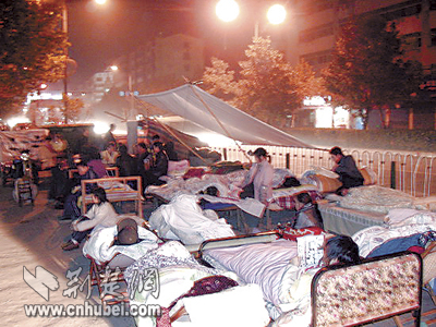 昨晚7時,記者連線武穴市武穴網(wǎng)負責人李曙勝。他告訴記者,武穴目前已經(jīng)恢復了往日的寧靜。從昨天上午開始,到長江大堤上“露營”的數(shù)千名群眾基本上都已經(jīng)搬回家中,城區(qū)商場、酒店、菜市場、電信等生活服務(wù)場所,全部恢復正常營業(yè)。昨晚,仍有少數(shù)居民到戶外避震,但大家都在住處附近“扎寨”,有的干脆睡在了貨車里。