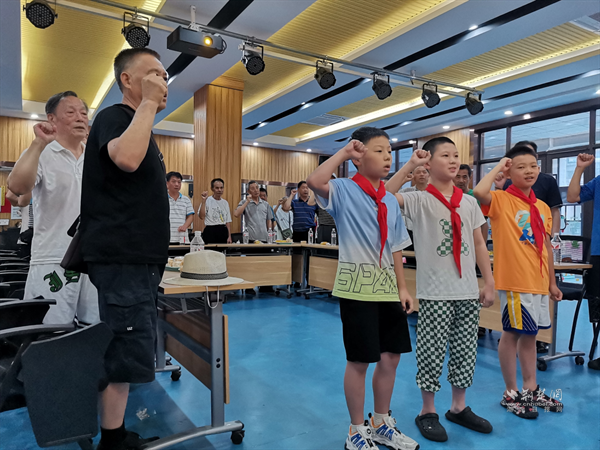 少先隊員為退役老兵們佩戴紅領巾。通訊員供圖