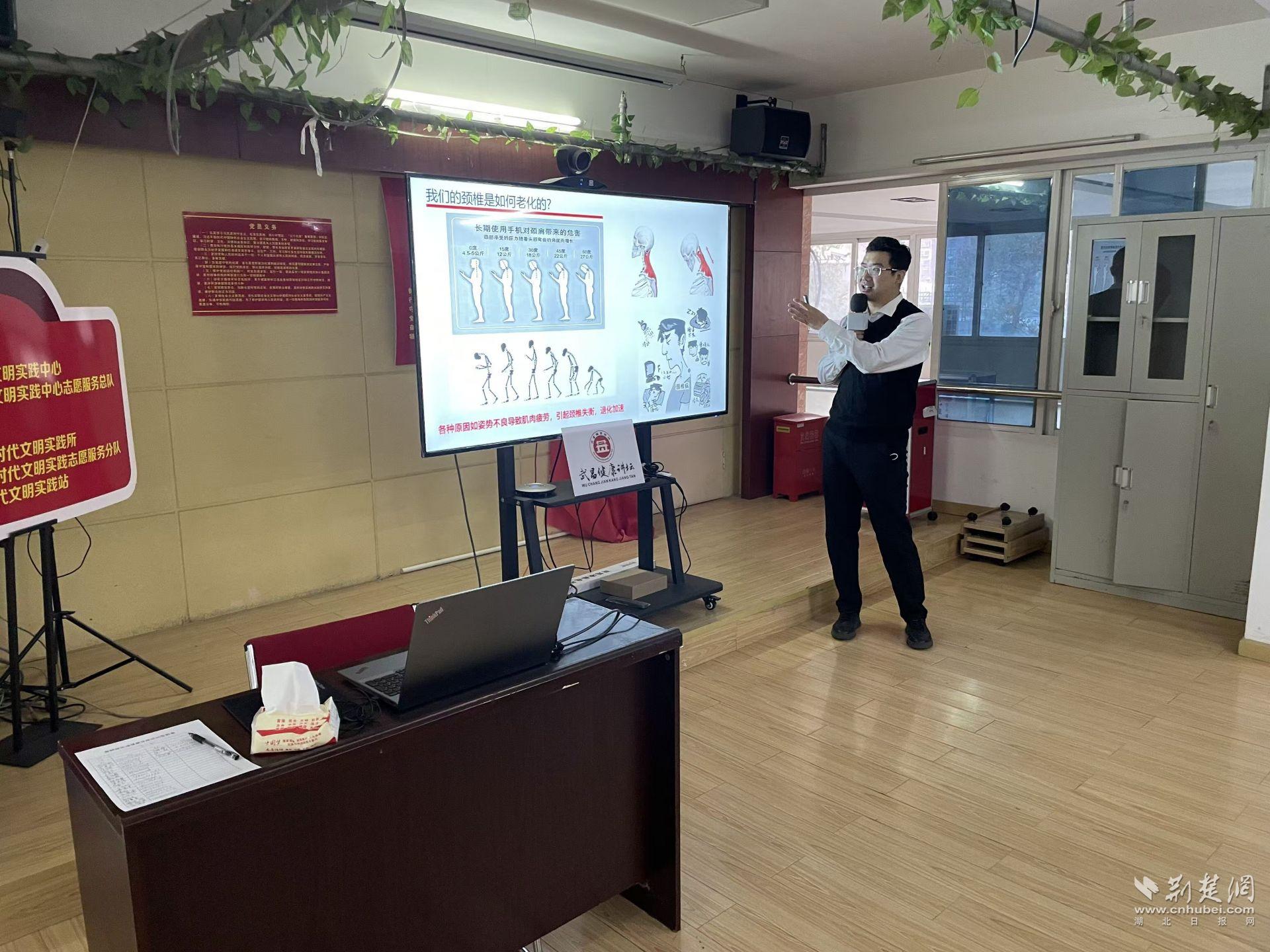 荊楚網(wǎng)(湖北日報網(wǎng))訊(通訊員 余小穎)為普及健康知識,提升居民健康素養(yǎng),12月25日上午,武昌區(qū)黃鶴樓街道讀書社區(qū)在社區(qū)二樓會議室開展“如何保護我們的頸椎”主題健康講壇活動?;顒友埼錆h市三醫(yī)院骨科主任范明宇,為社區(qū)居民帶來一堂干貨滿滿的健康講座。