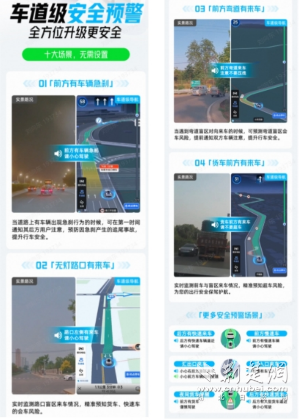 備受大家歡迎的車道級(jí)安全預(yù)警已覆蓋包括前方有車輛急剎、前方彎道有來車、貨車前方有來車、夜間前方有貨車等10大安全風(fēng)險(xiǎn)較高的行車場(chǎng)景,全方位、超視距地為用戶實(shí)時(shí)探測(cè)、預(yù)警行車風(fēng)險(xiǎn),為駕駛員提供更精細(xì)的車道級(jí)安全提示,有效減少交通事故風(fēng)險(xiǎn),讓用戶的返鄉(xiāng)之路多一份安全保障。