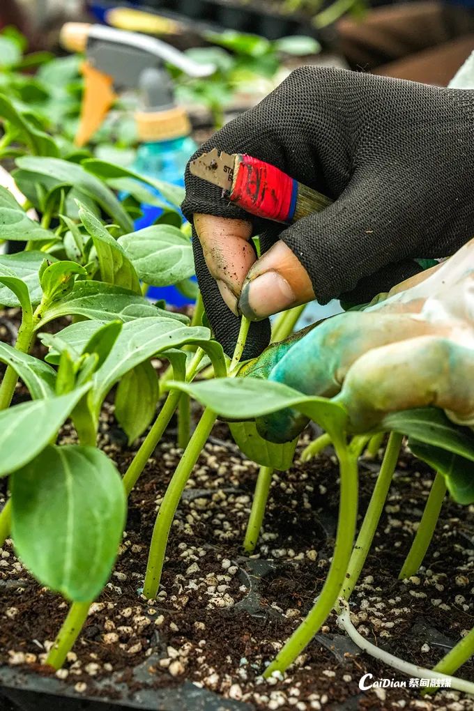 武漢市農(nóng)業(yè)科學(xué)院作物研究所高級農(nóng)藝師李愛成正和同事忙于將新培育的幼苗一棵棵移栽至大穴盤。李愛成介紹,為保障今年西瓜 “春提早”,助瓜農(nóng)豐產(chǎn)增收,自10月起,作物所種苗服務(wù)團隊就開始為整個育苗計劃做好準備?!?2月5日開始播葫蘆籽,10天后再播西瓜籽,為嫁接工作做準備。12月26日嫁接開始,計劃持續(xù)一個月,預(yù)計將在1月23日至24日完成,嫁接總量將達到150萬株。”