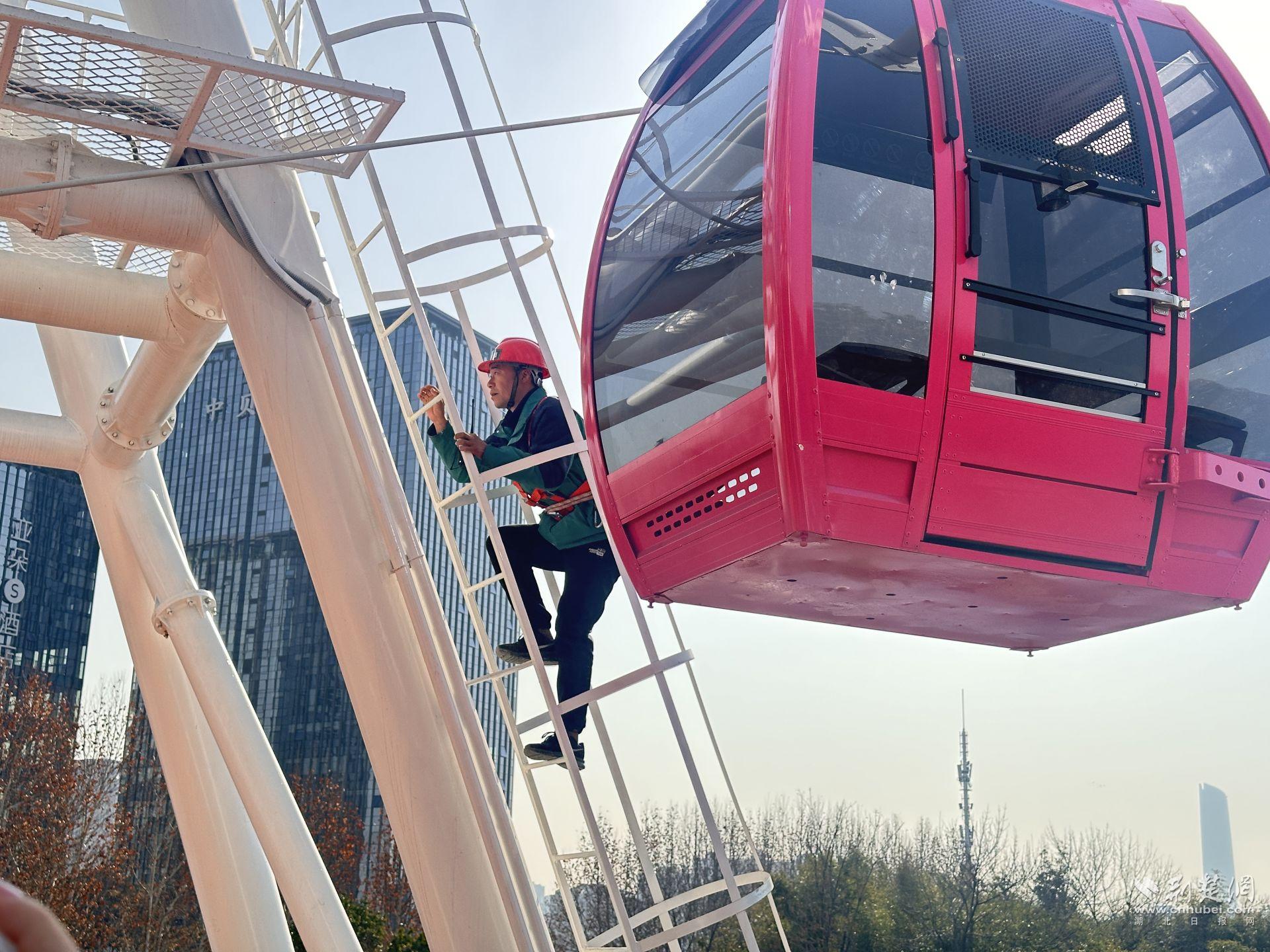 安全操作員檢查摩天輪。記者何婧 攝
