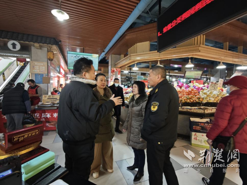 嚴(yán)密開(kāi)展農(nóng)貿(mào)市場(chǎng)“優(yōu)秩序保安全迎新年”專項(xiàng)督查行動(dòng),分管領(lǐng)導(dǎo)帶隊(duì)檢查了東湖景園市場(chǎng),重點(diǎn)檢查了市場(chǎng)內(nèi)外環(huán)境衛(wèi)生、長(zhǎng)江漢江魚禁售、計(jì)量電子秤、保供穩(wěn)價(jià)、消防安全等情況。
