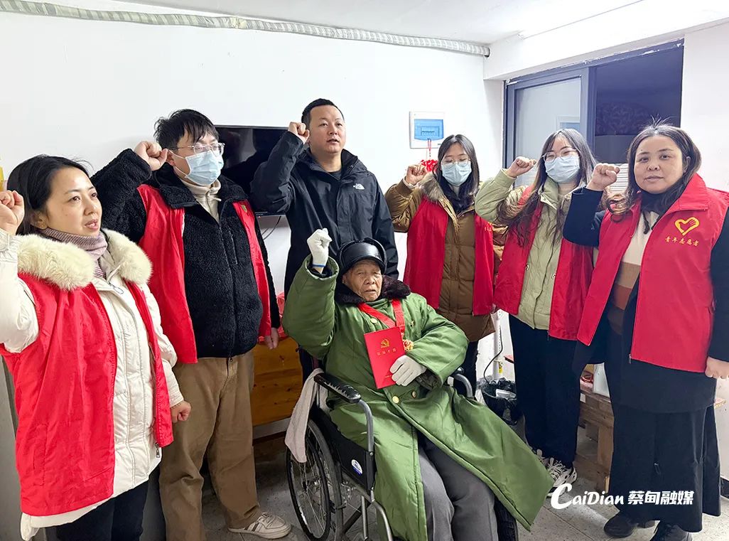 1月17日上午,龔家?guī)X社區(qū)黨員滿懷敬意,帶著精心準(zhǔn)備的生日蛋糕和米油等生活物資,來到張業(yè)榮老人家中,為他補(bǔ)辦100歲生日。張業(yè)榮佩戴著“光榮在黨50年”紀(jì)念章,深情高唱《沒有共產(chǎn)黨就沒有新中國(guó)》,與大家一起重溫入黨誓詞,講述往昔革命故事。