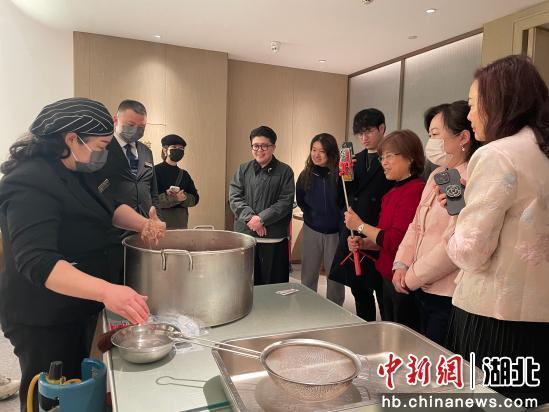 臺(tái)胞圍觀武漢圓子制作過程。