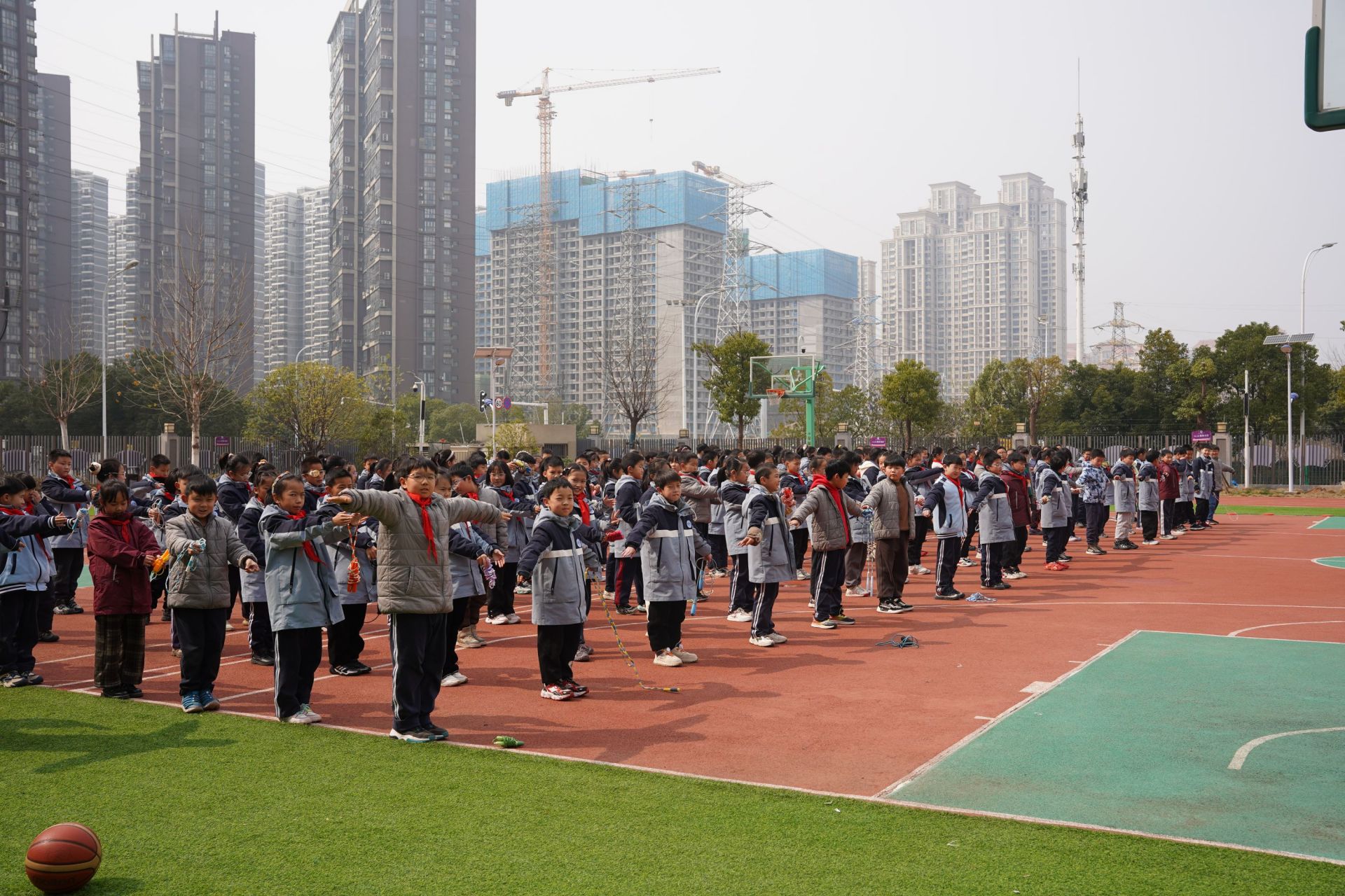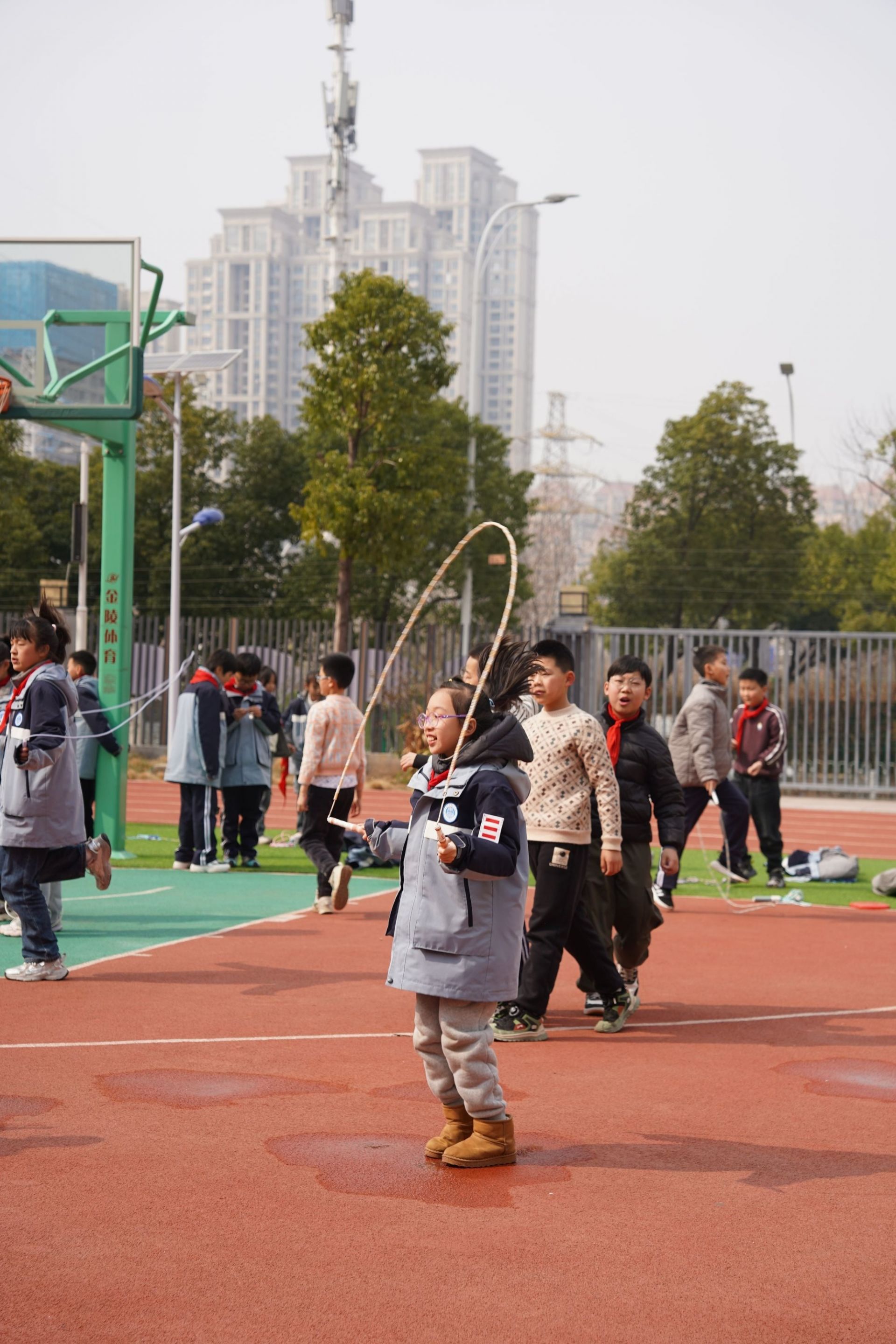 東湖實驗學校大課間,學生正在跳繩。張媛 攝