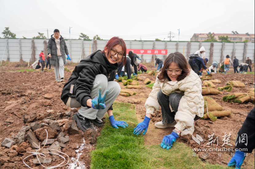 荊楚網(wǎng)(湖北日報網(wǎng))訊 (通訊員 朱喬丹 攝影 談宇鋒 梁鵬 王磊 陳沖)春風(fēng)拂綠,萬物競發(fā)。3月12日是第47個植樹節(jié),武漢生物工程學(xué)院響應(yīng)“履行植樹義務(wù),共建美麗中國”號召,在大健康學(xué)產(chǎn)研基地的茶園和三友園、四季園等多地開展植樹綠化活動。校領(lǐng)導(dǎo)、?!皟晌背蓡T帶頭參與,200余名師生志愿者共同揮鍬培土澆水,種下茶樹、櫻花、梅花、蠟梅等多種苗木七千余株,將生態(tài)理念融入勞動實踐,為魅力校園注入新活力。