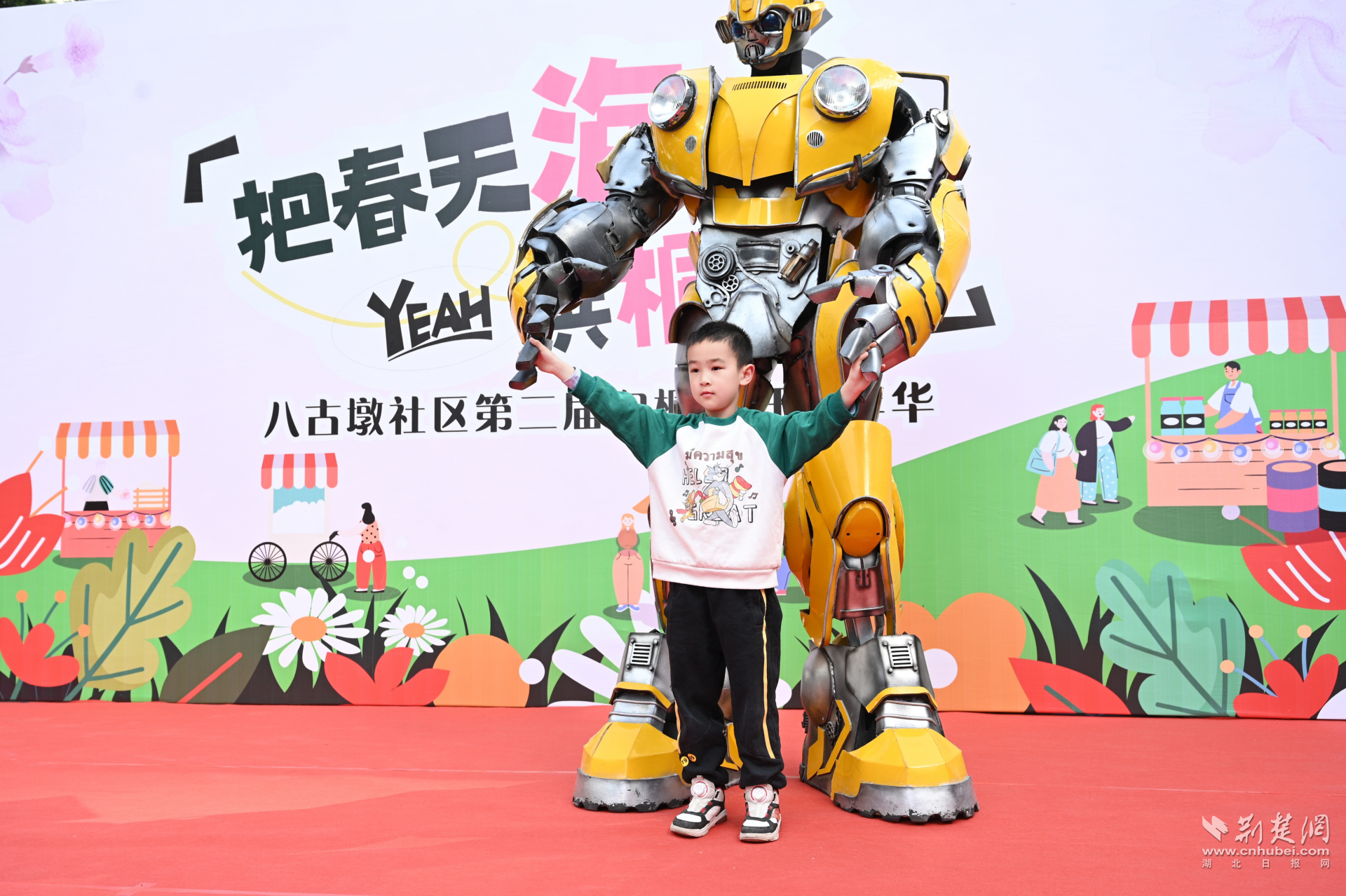 全民共建聚合力。活動籌備階段,社區(qū)黨委充分發(fā)揮居民議事會作用,發(fā)動30余名居民志愿者成立策展專班。轄區(qū)居民羅先生主動請纓,免費贊助大黃蜂機器人、小丑巡游等氛圍裝置,并與社區(qū)文藝團隊自編自演的5支主題舞蹈形成創(chuàng)意碰撞。當三米高的炫酷機器人牽手小丑姑娘巡游時,現場瞬間化作歡樂海洋,居民們爭相與巡游隊伍合影,自發(fā)在朋友圈發(fā)起“泡桐花下的奇遇”話題互動,活動未半已收獲上百人次線上傳播。