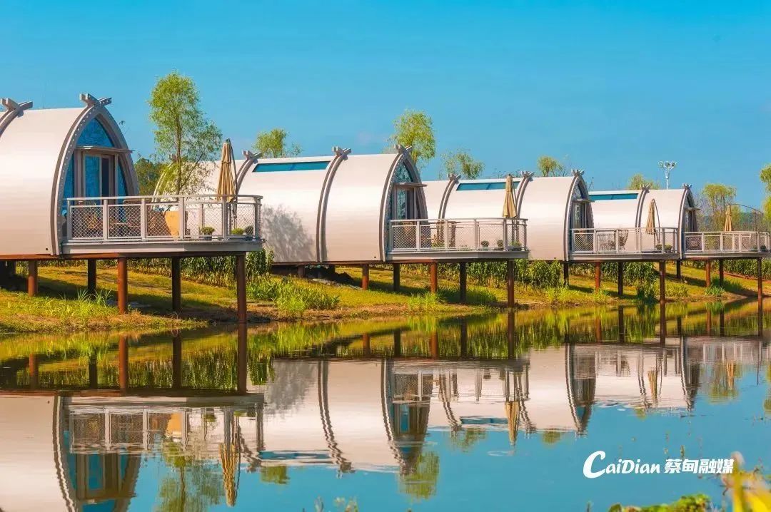 在花博匯景區(qū)中,穿越花海,遇見馬爾代夫同款“漂浮屋”。