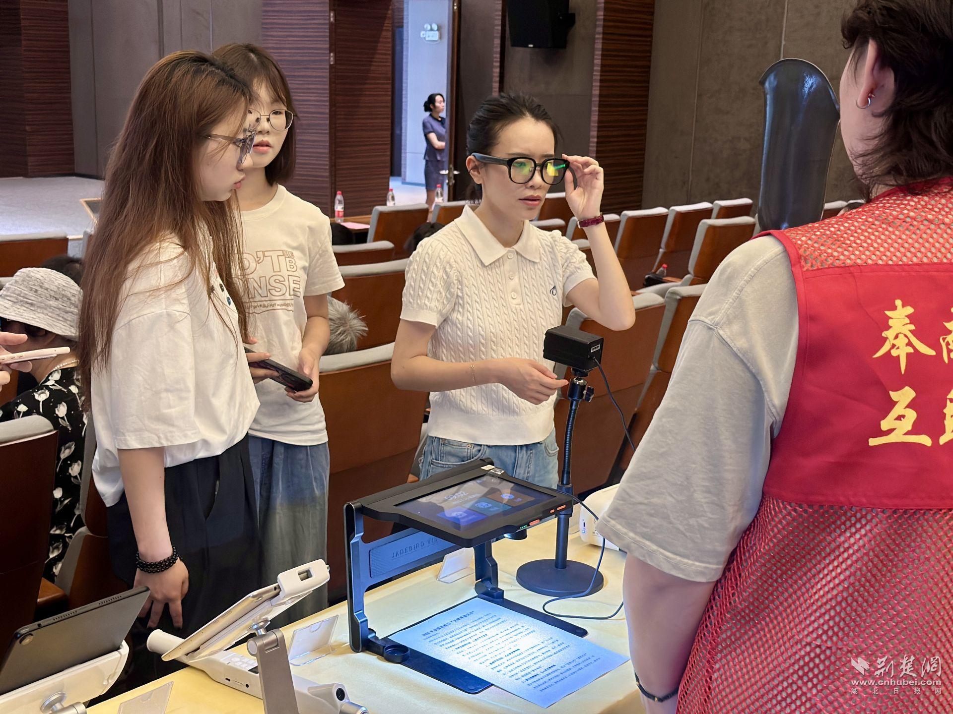 荊楚網(wǎng)(湖北日?qǐng)?bào)網(wǎng))訊(記者 何婧)“可以在眼鏡上看到字,太神奇了!”平板智能助智器、智能仿生手、語(yǔ)音導(dǎo)航眼鏡......5月16日,一件件融合前沿科技與人文關(guān)懷的助殘輔助器具,在江漢區(qū)第三十五次全國(guó)助殘日主題活動(dòng)上集中亮相。