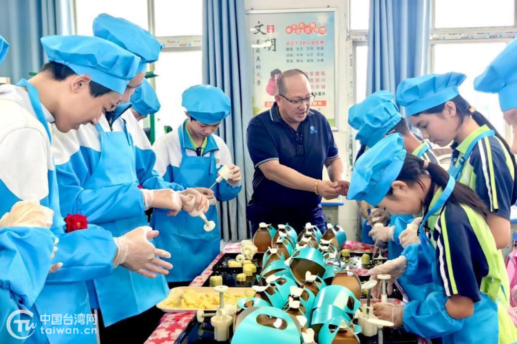 活動(dòng)中,武漢臺(tái)協(xié)及臺(tái)商代表向?qū)W校捐贈(zèng)電腦設(shè)備、教育資助金及節(jié)日禮物,學(xué)生回贈(zèng)感謝卡。隨后,臺(tái)商與30余名學(xué)生分組結(jié)對(duì),共同體驗(yàn)綠豆糕制作、蛋糕裱花等傳統(tǒng)文化DIY項(xiàng)目。