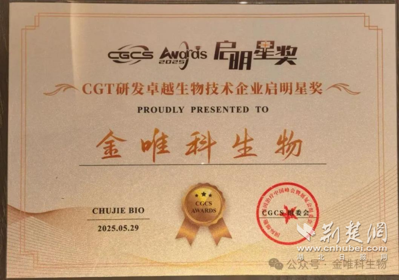 荊楚網(wǎng)(湖北日報網(wǎng))訊(通訊員 董高宣)近日,第六屆國際細(xì)胞與基因治療中國峰會(CGCS 2025)在南京揚子江國際會議中心召開,同期舉行了CGCS Awards“啟明星獎”頒獎盛典。東湖高新集團(tuán)投資企業(yè)武漢禾元生物科技股份有限公司(以下簡稱“禾元生物”)因優(yōu)質(zhì)的產(chǎn)品與服務(wù)榮獲“CGT領(lǐng)域可靠原料與試劑供應(yīng)啟明星獎”,另一投資企業(yè)成都金唯科生物科技有限公司(以下簡稱“金唯科”)憑借其在基因治療領(lǐng)域的創(chuàng)新成果榮獲“CGT研發(fā)卓越生物技術(shù)企業(yè)啟明星獎”。