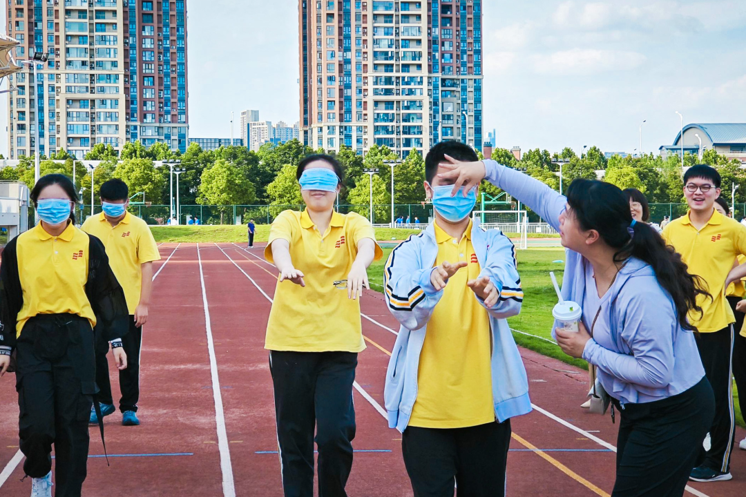 △左圖:班級(jí)開展集體活動(dòng)。右圖:張老師和同學(xué)們一起做游戲釋放壓力。