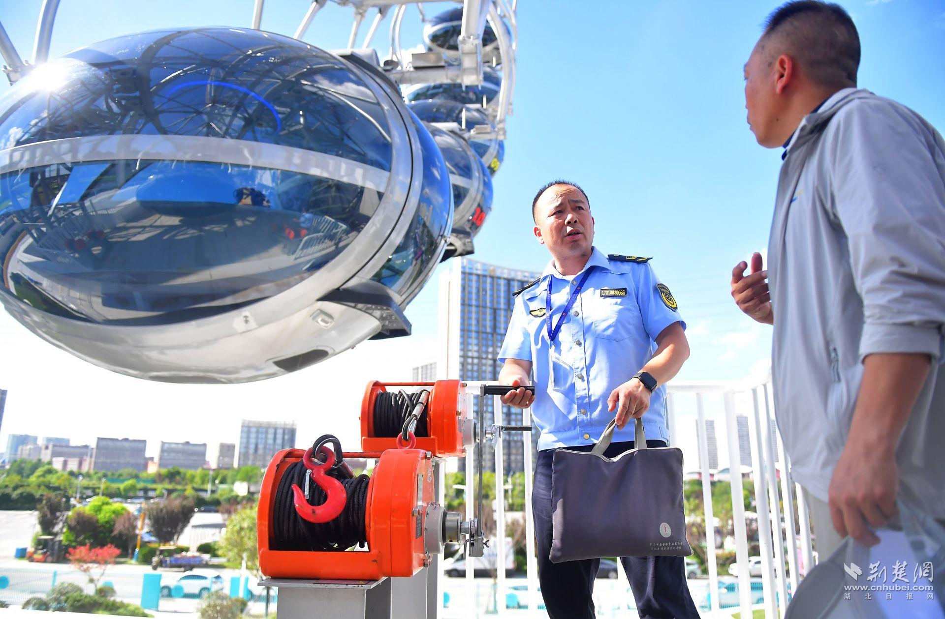 “經(jīng)全面‘體檢’,‘楚天之眼’摩天輪已具備投入運行條件。”東西湖區(qū)市場監(jiān)管局執(zhí)法人員馮文滔表示,節(jié)假日期間,還將提前對安全情況進行檢查,確保設備檢驗日期在有效期內(nèi),作業(yè)人員持證上崗,保障游客游玩安全?!?/p>