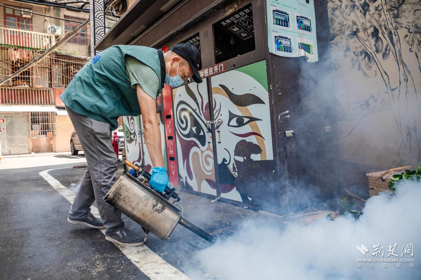 其中江漢區(qū)城管部門聯(lián)合衛(wèi)健部門,組織專業(yè)消殺隊伍,利用熱煙霧機對轄區(qū)公共區(qū)域開展系統(tǒng)性消殺,同時對窨井投放滅蚊幼蟲緩釋劑,確保消殺工作高效徹底?!安粌H要消殺成蟲,更要斷了蚊蟲的‘后路’”現(xiàn)場一位工作人員解釋道。洪山區(qū)城管部門則采用“清理+消殺”方式,由工作人員身著防護服,先使用高壓水槍對垃圾清運車輛、地埋站設(shè)備進行深度沖洗,再對垃圾容器、排水溝、果皮箱等易滋生蚊蟲的部位進行細致噴灑,全方位筑牢夏季防蚊“防護盾”。