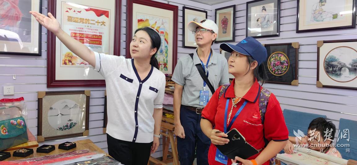 臺灣嘉賓一行先后參觀了武漢市殘疾人藝術(shù)館的手工藝剪紙創(chuàng)作和漢繡傳承基地、殘疾人文聯(lián)書法篆刻和文化傳媒工作室,以及“文脈新聲?墨韻星河”聽障人士藝術(shù)作品展。參觀過程中,他們深入了解了武漢本地殘障藝術(shù)文化的特色與發(fā)展成果,對剪紙、漢繡等傳統(tǒng)文化技藝贊嘆不已。