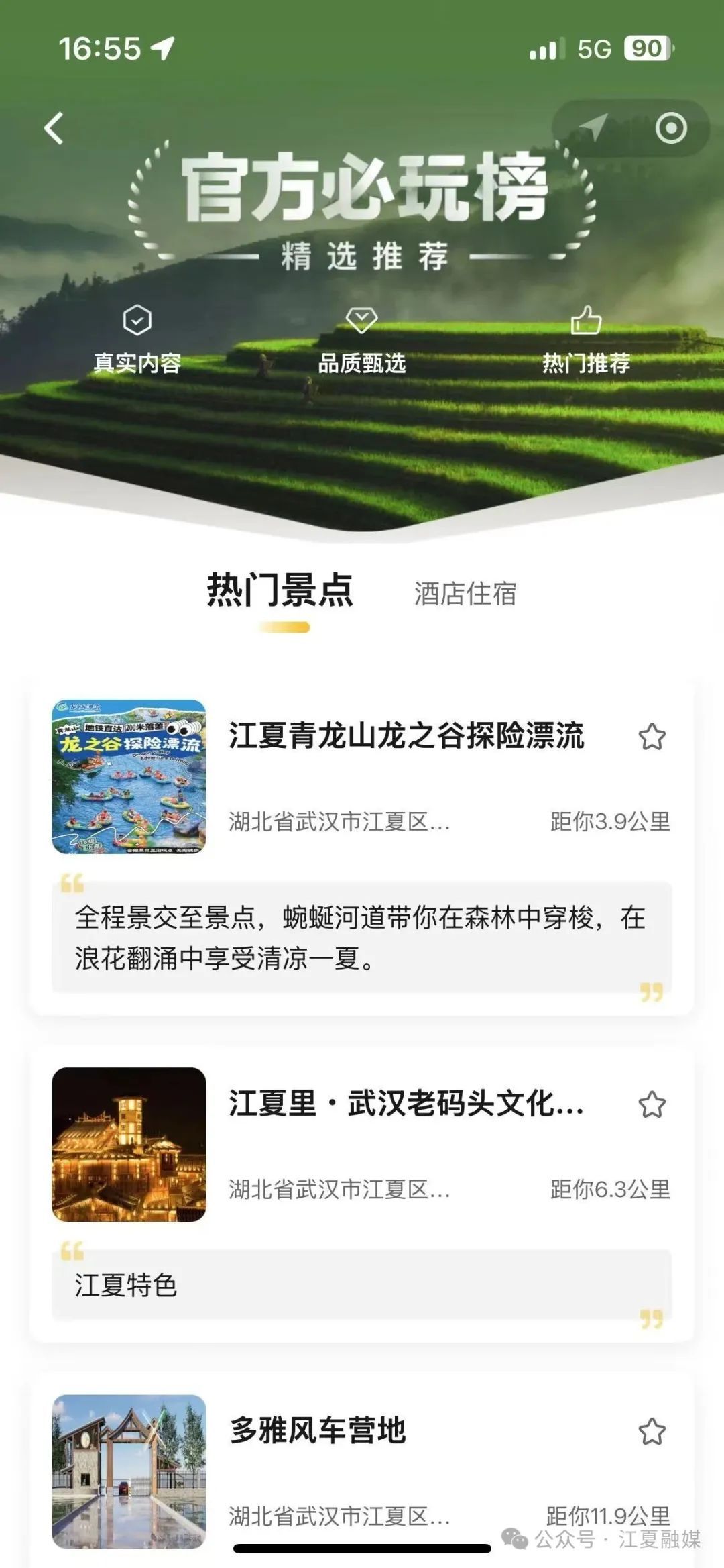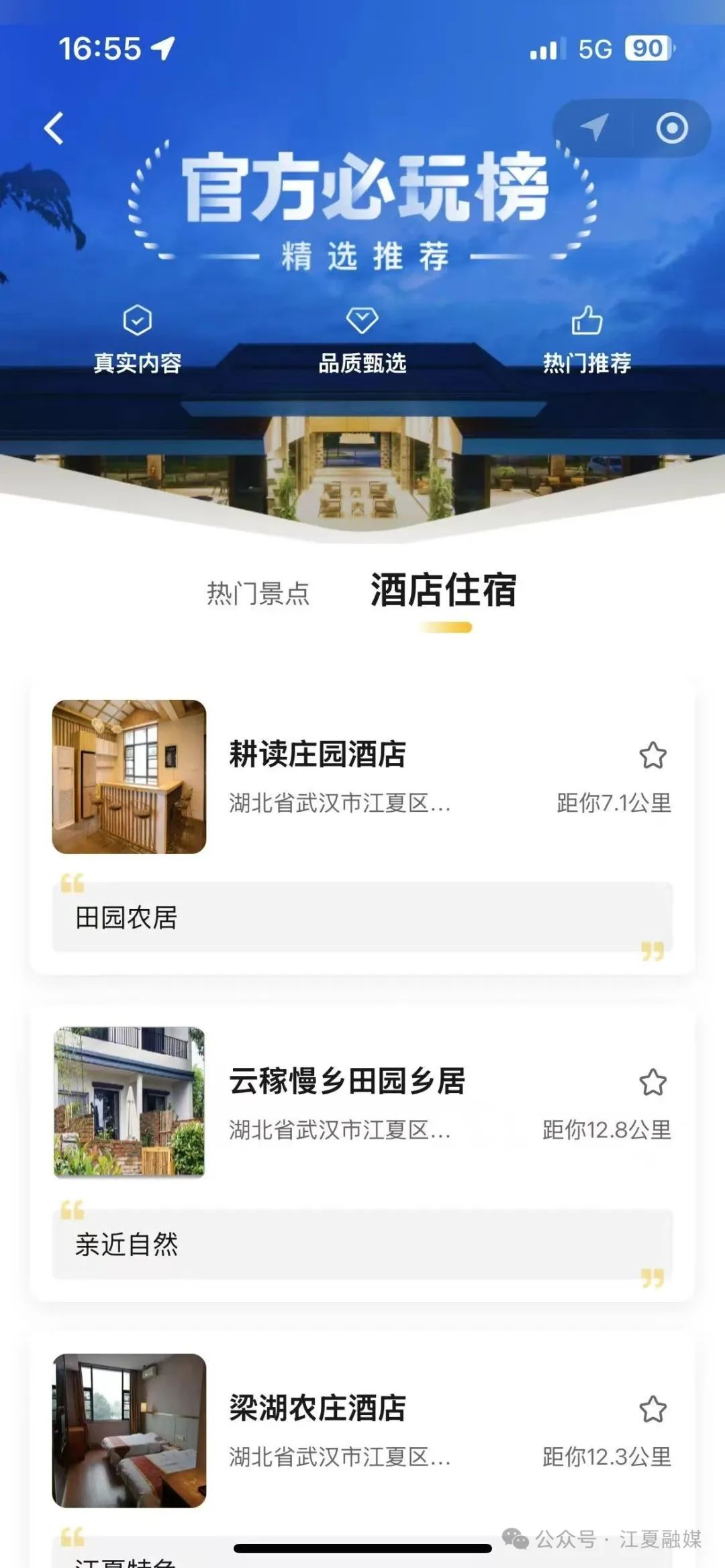 要是你想直奔熱門(mén)景點(diǎn),那“官方必玩榜”可一定得看,這里把江夏熱門(mén)景區(qū)、酒店住宿等項(xiàng)目一網(wǎng)打盡,輕松獲取各景點(diǎn)的詳細(xì)介紹,像八分山、梁子湖風(fēng)景區(qū)、小朱灣這些熱門(mén)景點(diǎn),除了精美的圖文介紹,還能一鍵導(dǎo)航,直接規(guī)劃好去景點(diǎn)的路,線(xiàn)真的太方便了!
