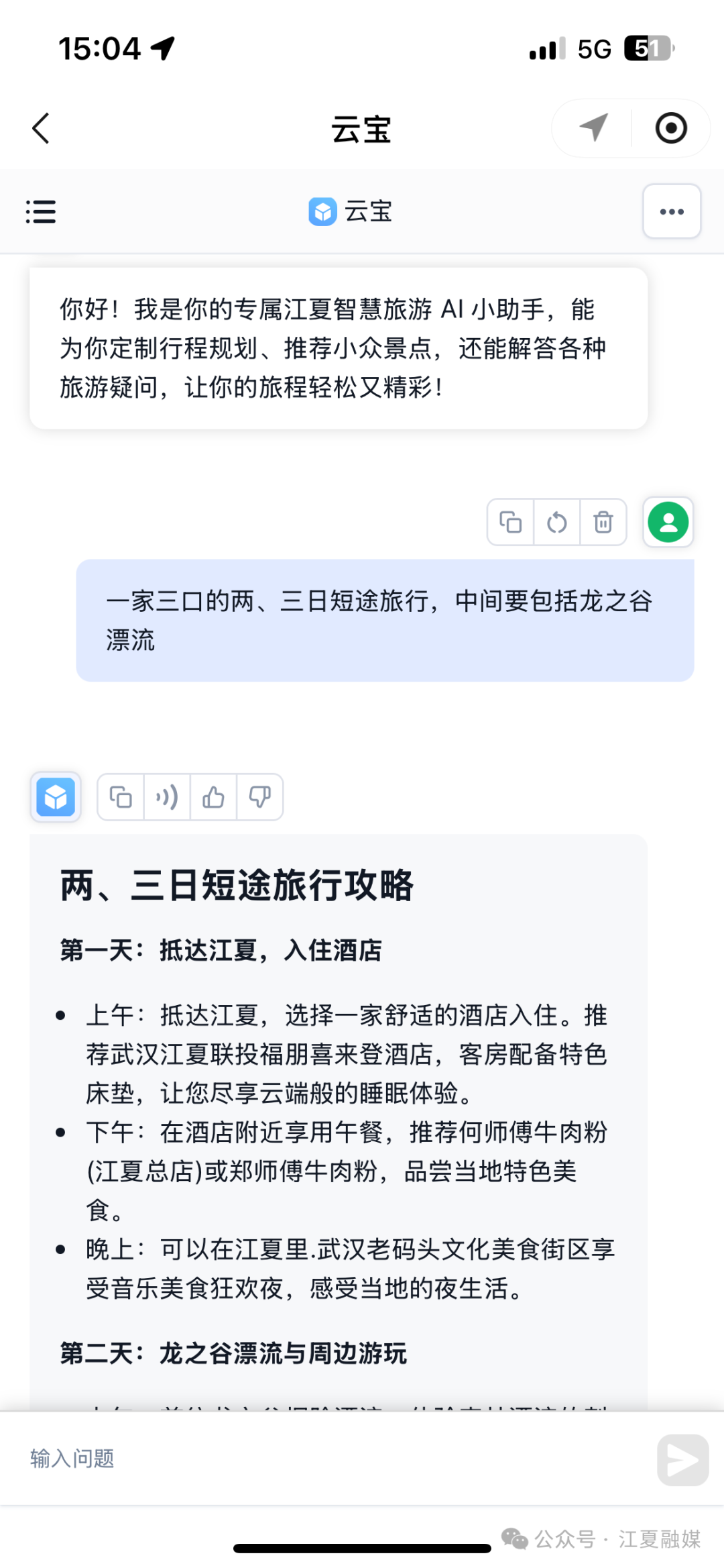 今年5月,基于騰訊元寶大模型,“云游江夏”小程序上線(xiàn)一款獨(dú)家AI——云寶,通過(guò)智能化技術(shù)全面升級(jí)游客體驗(yàn),同時(shí)為景區(qū)管理注入數(shù)字化活力。借助AI智能導(dǎo)游和個(gè)性化推薦功能,游客可享受定制化行程規(guī)劃;同時(shí),AI即時(shí)應(yīng)答服務(wù)則能快速解決如查找景區(qū)信息等實(shí)用問(wèn)題,大幅提升出游便利性。