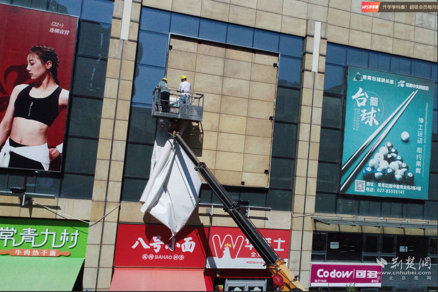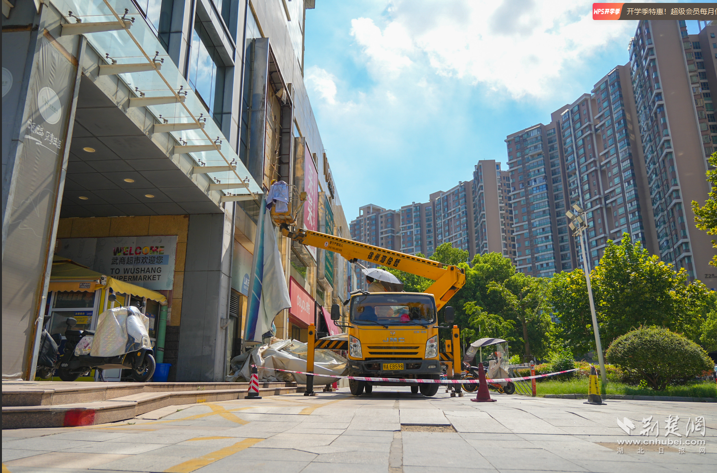 “存在安全隱患的廣告,堅(jiān)決依法拆除,絕不姑息!”8月19日上午,在常青花園中央商業(yè)街武商量販門(mén)前,東西湖區(qū)城管執(zhí)法局市政科相關(guān)負(fù)責(zé)人介紹說(shuō)。在現(xiàn)場(chǎng),施工人員正搭乘高空作業(yè)車(chē),對(duì)武商量販外立面的問(wèn)題廣告進(jìn)行一一拆除。據(jù)了解,常青花園中央商業(yè)街人流量大、廣告設(shè)置密集,部分廣告牌因長(zhǎng)期風(fēng)吹日曬出現(xiàn)畫(huà)面破損等問(wèn)題,既影響市容環(huán)境,更對(duì)市民安全構(gòu)成潛在威脅。
