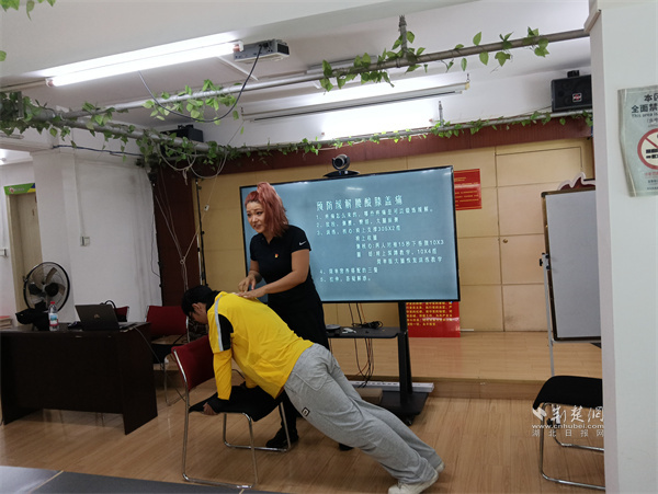樊容帶領(lǐng)學(xué)員練習實用健康知識。 通訊員供圖