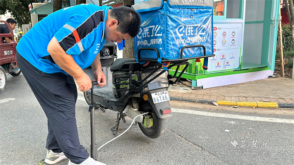 社區(qū)在北大門入口處設(shè)立的“暖心補給站”,成了小哥們的“能量加油站”。拉開補給站的冰柜,冰爽的礦泉水整齊擺放;醫(yī)藥箱里,創(chuàng)可貼、碘伏、藿香正氣水等應(yīng)急藥品一應(yīng)俱全;維修工具箱和電動打氣筒已幫十多位小哥解決過電動車爆胎、零件松動的難題;打包袋也方便了小哥臨時更換破損外賣包裝?!跋奶焖屯瓴?,來這兒取瓶冰水,渾身的燥熱都散了,心里也涼快!”快遞小哥王師傅邊說邊拿起一瓶水,臉上滿是滿足。