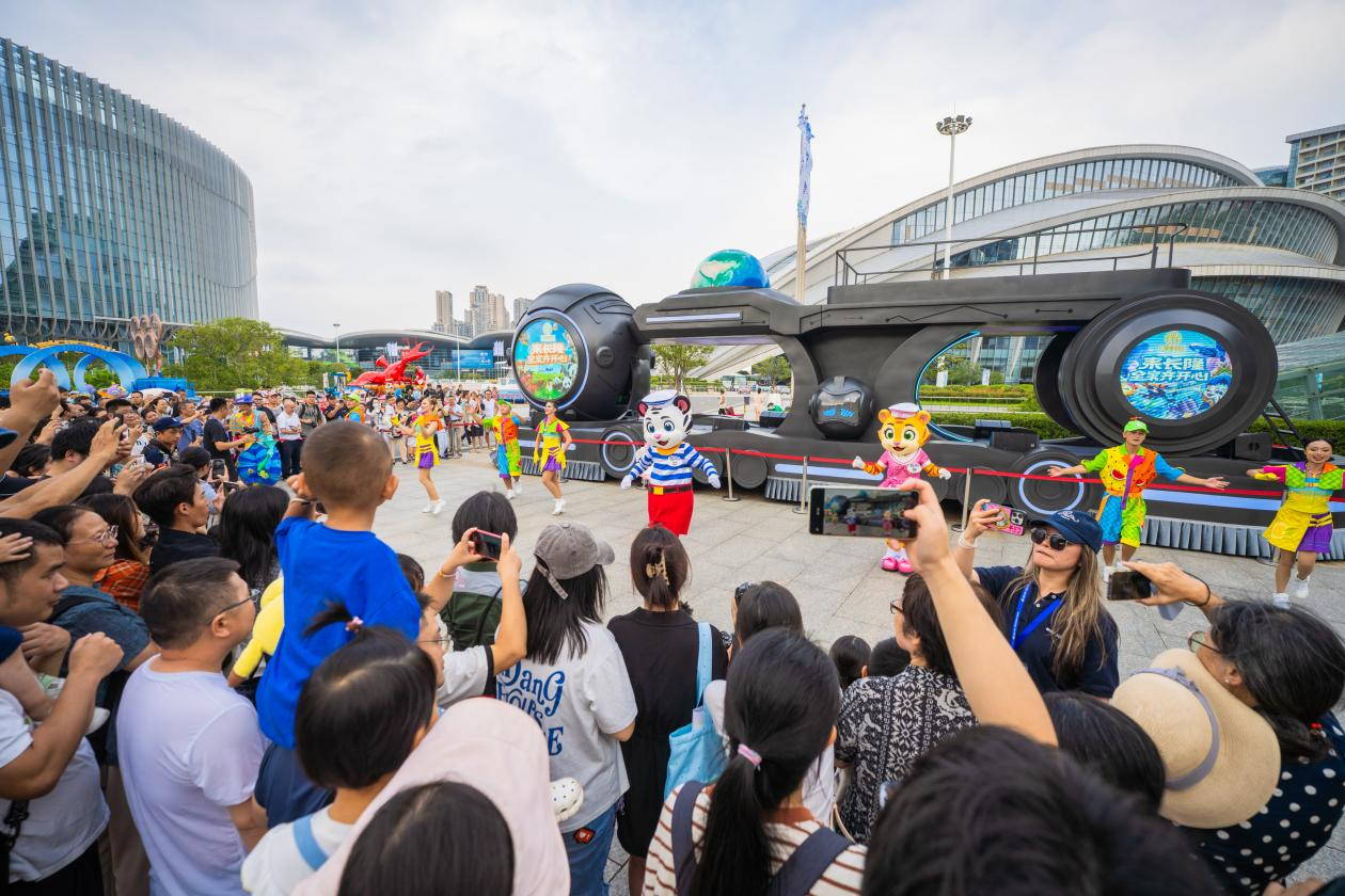 小黃人、卡通虎都來了。9月12日,在室外展區(qū),北京環(huán)球影城特別版狂歡嘉年華掀起一股熱潮。小黃人斯圖爾特、凱文、穿靴子的貓、朱利安國王身穿盛裝,閃亮登場。演員們會向現(xiàn)場小伙伴發(fā)出熱舞邀請,還有教學。9月13日,長隆集團領銜出場的“歡樂大使”卡通虎卡卡、琦琦與粉小琦盛裝亮相,帶來了一場歡樂派對,還有外籍演員熱舞?,F(xiàn)場觀眾直呼:“好熱情”“好活潑”!
