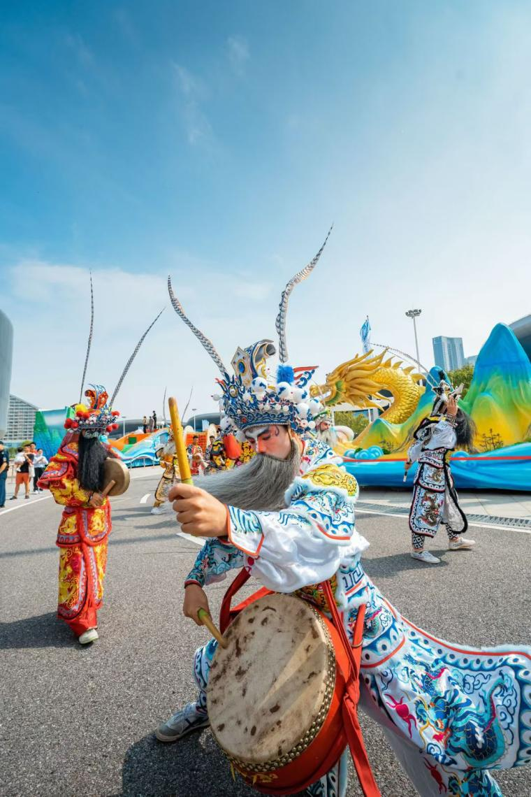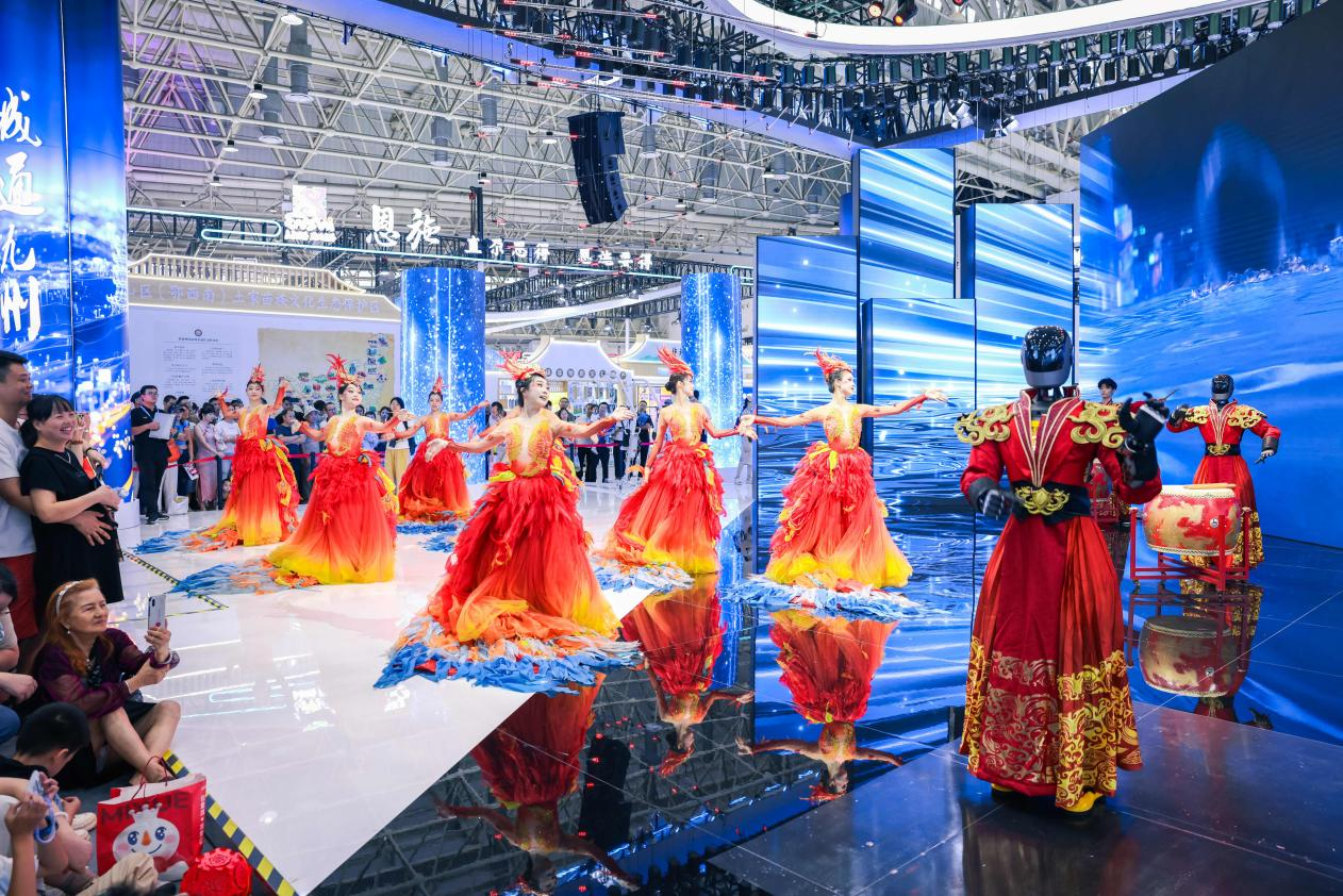 在展館內外可以看到,各展區(qū)人頭攢動,在廣東長隆展區(qū),兩點半的演出還沒開始,人流已經里三層外三層打圍。伴著強勁律動,外籍演員們還邀請觀眾共舞互動,現(xiàn)場氣氛爆棚。展館內部,韓國館、陜西館等展位的熱舞、非遺展演成了焦點。多種多樣的智能設備體驗等,更成為小朋友的樂園。