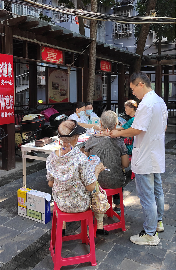 義剪區(qū)里,和諧沙龍理發(fā)室的專業(yè)理發(fā)師耐心詢問每位老人的發(fā)型偏好,一邊嫻熟修剪,一邊與老人親切交談。家住九龍井小區(qū)的賈師傅高興地表示:“社區(qū)把醫(yī)生和理發(fā)師直接請到了家門口,實在太貼心了!”