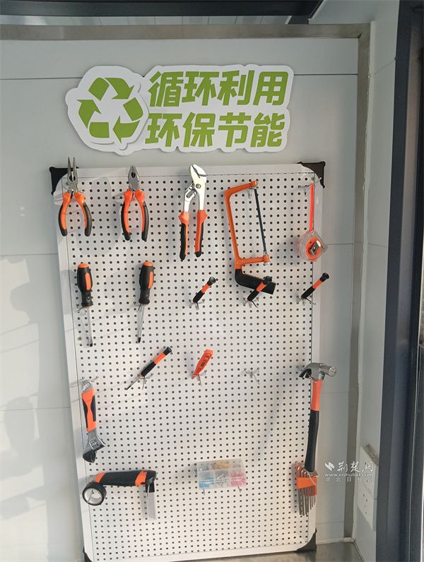 曾經(jīng)用于疫情防控的核酸亭也煥發(fā)新生,貼上新膜、掛上“堤”碳小屋招牌后,這里成了社區(qū)共享空間。工具架上擺放著扳手、螺絲刀等共享工具,展示柜里陳列著奶粉罐改造的多肉花盆、舊牛仔褲縫制的時尚挎包。不少居民自豪地說:“在我們這兒,垃圾能變寶藏!”