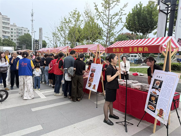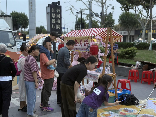 活動(dòng)現(xiàn)場(chǎng)設(shè)置市集區(qū)與演藝區(qū)兩大板塊。市集區(qū)內(nèi)人頭攢動(dòng),轄區(qū)共建單位、音樂企業(yè)與多家商戶積極參與,匯聚特色商品與音樂互動(dòng)體驗(yàn)。大音琴行展出多種樂器并銷售音樂周邊產(chǎn)品,吸引眾多武漢音樂學(xué)院學(xué)生及音樂愛好者駐足交流;元祖食品推出月餅、點(diǎn)心等節(jié)令糕點(diǎn)展銷,為中秋佳節(jié)提前預(yù)熱;艷陽天·非遺鮰魚(黃鶴樓店)、中百倉(cāng)儲(chǔ)、九州上醫(yī)館及多家大成路特色美食商戶也紛紛設(shè)點(diǎn),讓市民在觀賞演出之余,盡享購(gòu)物與美食樂趣。