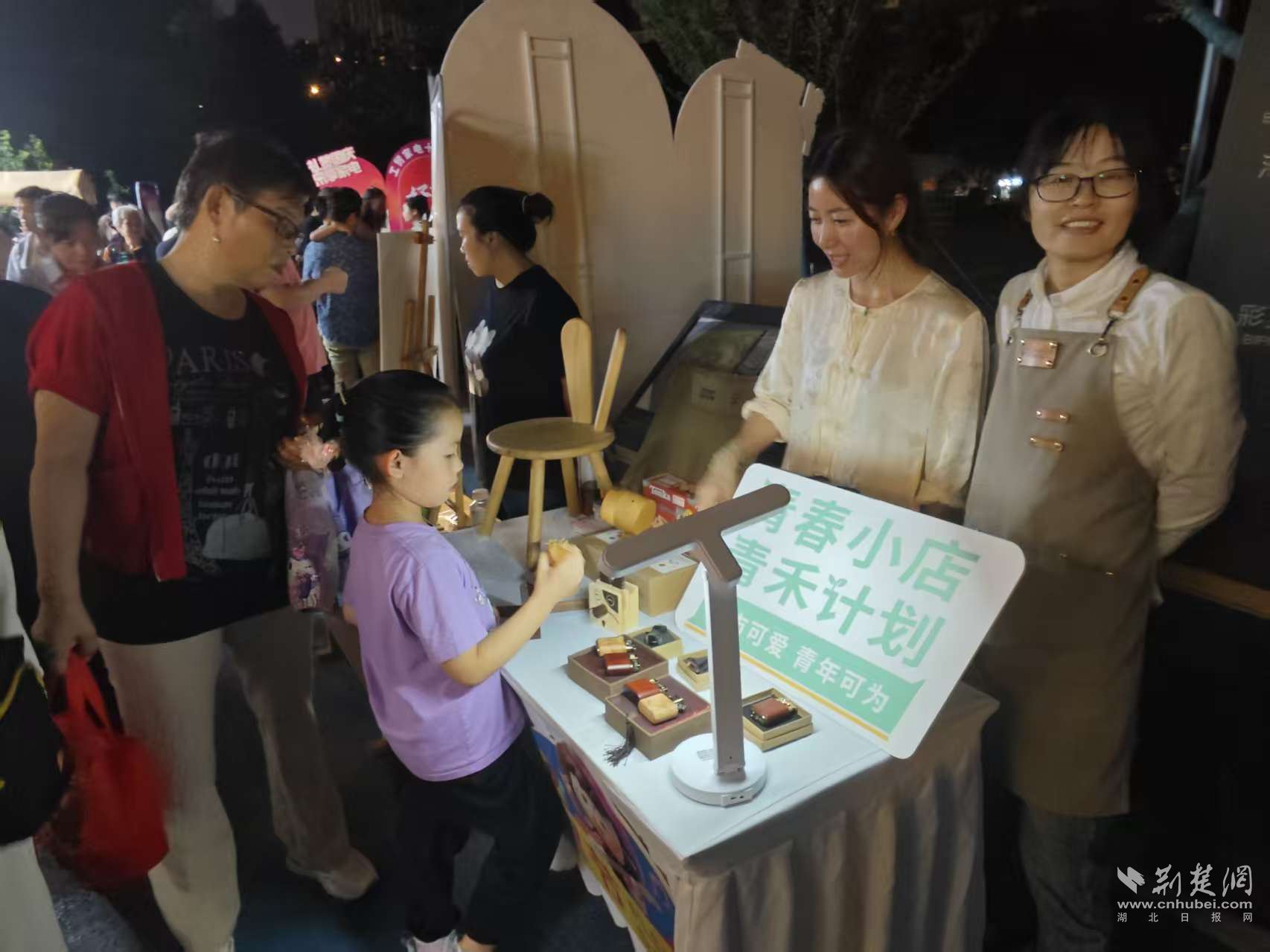 廣場另一側(cè)的主題市集同樣熱鬧非凡:景德鎮(zhèn)陶瓷、手工飾品、特色飲品琳瑯滿目,社區(qū)合伙人設置自然研學、木工DIY體驗區(qū)成為親子家庭的熱門打卡點;便民服務攤位貼心實用;“月餅品嘗區(qū)”和“祝福祖國簽名墻”人氣爆棚。居民李阿姨感慨道:“今天能和鄰居一起做手工、看節(jié)目、聊聊天,感覺特別溫暖,社區(qū)就像一家人?!?/p>