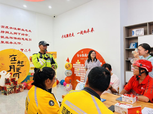 荊楚網(wǎng)(湖北日?qǐng)?bào)網(wǎng))訊(通訊員 劉蘭蘭)9月28日下午,武昌區(qū)黃鶴樓街道新就業(yè)群體服務(wù)驛站、黃鶴先“蜂”新時(shí)代文明實(shí)踐點(diǎn)內(nèi)暖意融融,一場(chǎng)以“月滿華誕 驛家同歡”為主題的中秋國(guó)慶雙節(jié)特別活動(dòng)在此開(kāi)展?;顒?dòng)通過(guò)一系列精心設(shè)計(jì)的環(huán)節(jié),為快遞員、外賣騎手等新就業(yè)群體送上溫暖節(jié)日祝福,搭建互動(dòng)交流橋梁,切實(shí)提升其歸屬感與幸福感。