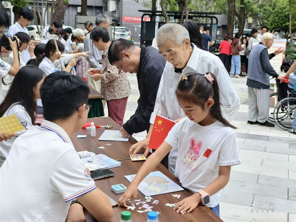 9月28日,“禮贊祖國華誕,共赴文明之約”國慶文明實(shí)踐活動(dòng)緊接著上演,“新時(shí)代文明實(shí)踐百姓大舞臺(tái)”成為活動(dòng)核心載體,讓居民既是觀眾也是參與者。舞臺(tái)上,歡快熱烈的鑼鼓《中國人》拉開序幕,武漢方言三句半《文明新風(fēng)尚》用接地氣的語言講述社區(qū)文明故事,詩朗誦《文明的力量》以深情的語調(diào)傳遞文明建設(shè)的重要意義。舞臺(tái)旁的親子互動(dòng)區(qū)同樣熱鬧,“國旗徽章”制作區(qū)里,志愿者向孩子講解國旗的設(shè)計(jì)意義與象征內(nèi)涵,孩子們認(rèn)真粘貼、組裝,將愛國種子悄然種在心中;“文明拼圖與愛國徽章組合”活動(dòng)中,家庭成員分工協(xié)作,把印有“文明禮讓”“和諧鄰里”“愛護(hù)環(huán)境”等字樣的拼圖碎片一一拼接,在動(dòng)手過程中加深對(duì)文明規(guī)范的理解。