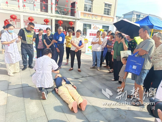 廣場另一側(cè),醫(yī)護(hù)人員鋪開模擬人體模型,演示燒傷包扎與心肺復(fù)蘇。“包扎要先清潔傷口,再用紗布從傷口下方往上層層固定,松緊度以能伸入一指為宜;做心肺復(fù)蘇時,按壓深度必須達(dá)5-6厘米,頻率保持每分鐘100-120 次,節(jié)奏就像跟著‘1001、1002’數(shù)數(shù)一樣均勻?!贬t(yī)護(hù)人員一邊說,一邊用手比劃著關(guān)鍵動作。講解完畢,邀請居民實(shí)操,遇到按壓角度偏斜、力度不足的情況,便俯身手把手糾正,耐心調(diào)整姿勢,確保每個人都能真正掌握正確要領(lǐng)。