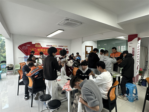 現(xiàn)場(chǎng)采用“1+1”結(jié)對(duì)模式,即1名新就業(yè)群體成員與1名老年人協(xié)作。年輕人負(fù)責(zé)填充艾草,老年人則憑豐富的生活經(jīng)驗(yàn),指導(dǎo)填充節(jié)奏和套枕套的技巧,兩代人配合默契?!捌綍r(shí)送餐趕時(shí)間,很少和社區(qū)老人聊上幾句,今天才發(fā)現(xiàn)他們懂這么多生活技巧,太厲害!” 一位外賣騎手一邊小心將艾草填入枕套,一邊笑著感慨,身旁的老人則熟練幫他封口打結(jié)。