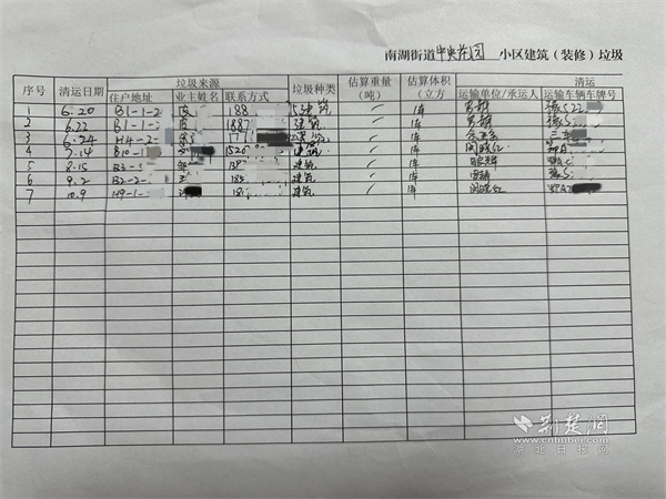 社區(qū)建立清晰的裝修垃圾排放臺(tái)賬。 通訊員供圖