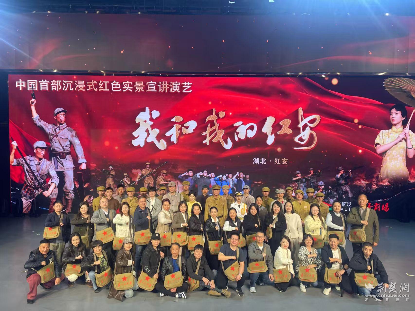 夜幕降臨,紅秀劇場(chǎng)燈光亮起,沉浸式紅色實(shí)景演藝《我和我的紅安》以聲光電融合的形式再現(xiàn)革命歷史。隨著劇情推進(jìn),崢嶸歲月的畫面一幕幕重現(xiàn),學(xué)員們?cè)谡鸷撑c感動(dòng)中感悟理想信念的力量。
