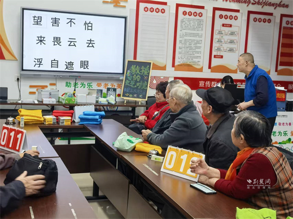 “詩詞消消樂”環(huán)節(jié)將活動推向高潮。主持人把經(jīng)典詩句拆分成零散詞組,老教授們需搶鈴競速、完整誦讀。一時間,搶鈴聲此起彼伏,大家你爭我搶,展現(xiàn)出別樣的活力與熱情。