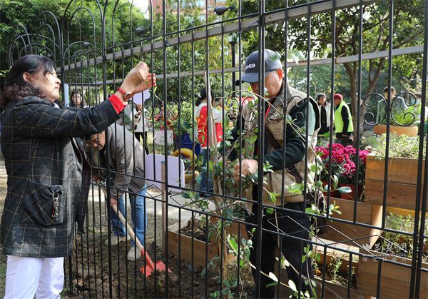 部分路過(guò)的居民受到感染,主動(dòng)加入到栽種行列。還有些居民特意帶來(lái)家中生病的植物,請(qǐng)園藝師“把脈問(wèn)診”,現(xiàn)場(chǎng)氣氛活躍。