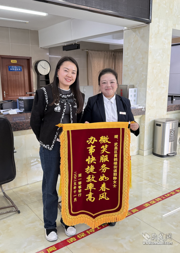 荊楚網(wǎng)(湖北日?qǐng)?bào)網(wǎng))訊(通訊員劉麗)近日,武昌區(qū)黃鶴樓街道便民服務(wù)中心工商窗口上演了暖心一幕。一位商戶代表將一面書(shū)寫(xiě)著“微笑服務(wù)如春風(fēng),辦事快捷效率高”的錦旗,鄭重送到工作人員郭靜手中,對(duì)她即使在生病住院期間仍堅(jiān)持線上為商戶排憂解難的敬業(yè)精神表達(dá)誠(chéng)摯謝意。