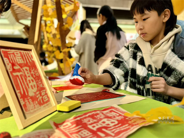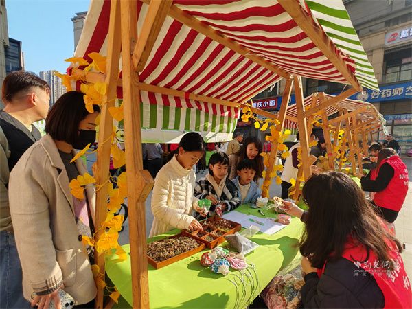 中藥香囊攤位散發(fā)著艾草、薄荷等香料的清香,居民們在志愿者老師的指導(dǎo)下,根據(jù)個人喜好,自由搭配制作專屬香囊。福字拓印DIY區(qū),小朋友們手持拓印工具,親手制作寓意吉祥的福字。